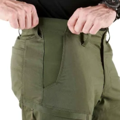 The 5.11 Tactical Apex Pant combines precision engineering, resilient construction, and a functional design; making them a next-gen cargo pant that exceeds expectations in any role. Ideal for tactical, casual, or covert wear, the Apex Pant is built from 7.2 oz. Flex-Tac mechanical stretch canvas that offers extreme durability while remaining flexible and mobile. Front hip pockets feature reinforced fabric at the knife clip, and thigh-mounted cargo pockets are deep, smooth, and include zip closure to keep your gear stable when you’re on the move. Internal pockets sewn into each cargo pouch and twin back yoke pockets are all sized for AR magazines, providing plenty of space for spare ammo. A covert pocket at the front waistband is sized for a set of flex cuffs, and a handcuff key pocket is hidden at the rear waistband. A flexible comfort waistband, seven sturdy belt loops, a fully gusseted crotch, and articulated knees ensure complete freedom of movement, and a Teflon treated exterior repels stains, spills, and soil to keep you looking your best.