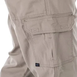The 5.11 Tactical Pants utilizes a proprietary weave that binds in on itself to prevent raveling. Double and triple-needle construction is utilized throughout, plus 48 bartacks in high-stress areas add to the tremendous strength of the tactical pants. For added durability, the magazine/cell phone pocket and corners of the slash pockets are lined with Cordura nylon. The double reinforced seat and knees provide enhanced abrasion protection, and interior knee slots are ready to accept 6mm neoprene kneepads. At the ankle hemline, built-in blousing strap openings can accommodate 500 cord.