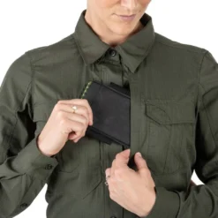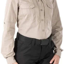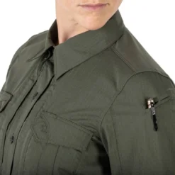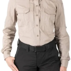 The 5.11 Tactical Women’s Stryke Long Sleeve Shirt is constructed from rugged Flex-Tac mechanical stretch ripstop fabric with a Teflon finish to repel water, stains and soil. Dual chest pockets feature flaps, and the 5.11 Ready Pockets are ideal for storing your phone or other sensitive gear. Hidden button-down collar tabs, a patented sleeve pen pocket, and Melamine buttons round out the look on a shirt that is every bit as tough as your daily duties.