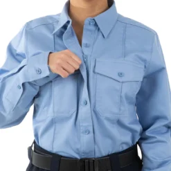 The First Tactical Women’s Cotton Station Long Sleeve Shirt Designed for Women – The Cotton Station Shirt, constructed with 100% Tough Cotton, provides you the ultimate combination of durability and comfort. Stay cool and composed during intense tasks with the integrated mesh lined back yoke, ensuring optimal ventilation for enhanced performance. Experience easy access to essential gear thanks to our integrated pen pockets and hook/loop chest pockets. Elevate your professionalism with the Cotton Station Shirt tailored just for you.